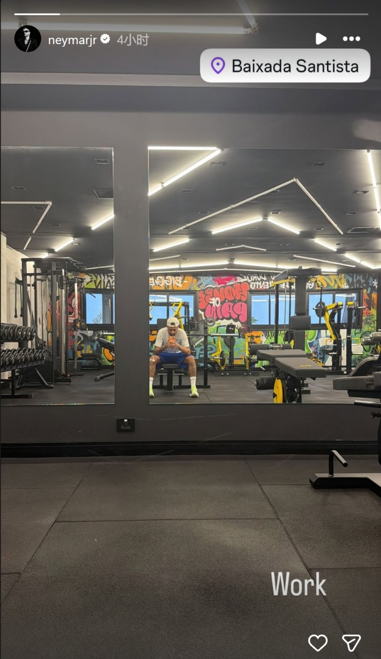 内马尔在假期接受关节镜手术,治疗半月板损伤,这位巴西前锋正在努力恢复,他在社媒晒出健身房内进行康复训练的自拍照片,配文:“训练。”