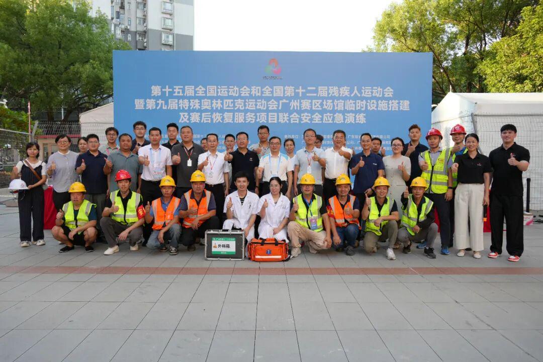 验收会后,场馆运行部、残特奥会乒乓球(大众组)项目竞赛委员会联合举办临时设施安全应急演练活动。